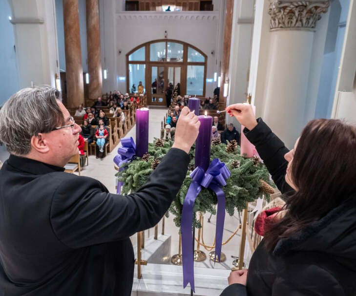 A Szent Mihály székesegyházban fellobbant az adventi koszorú második gyertyájának lángja is.