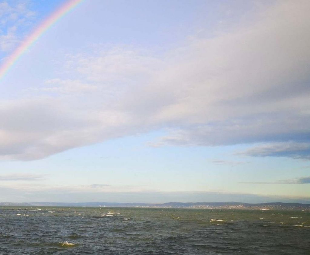 Szerda reggel hatalmas dupla szivárvány jelent meg a Balaton fölött, ami hosszú percekig látható volt.