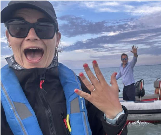 Az 55. Kékszalag balatoni tókerülő verseny alatt, a Principessa Libera beérkezése előtt, a vízre kihajózva kérte meg Böröc...