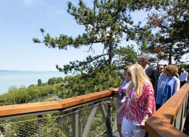 Balatonbogláron csodálatos panoráma tárul a látogatók elé a lombkorona tanösvény magasából.