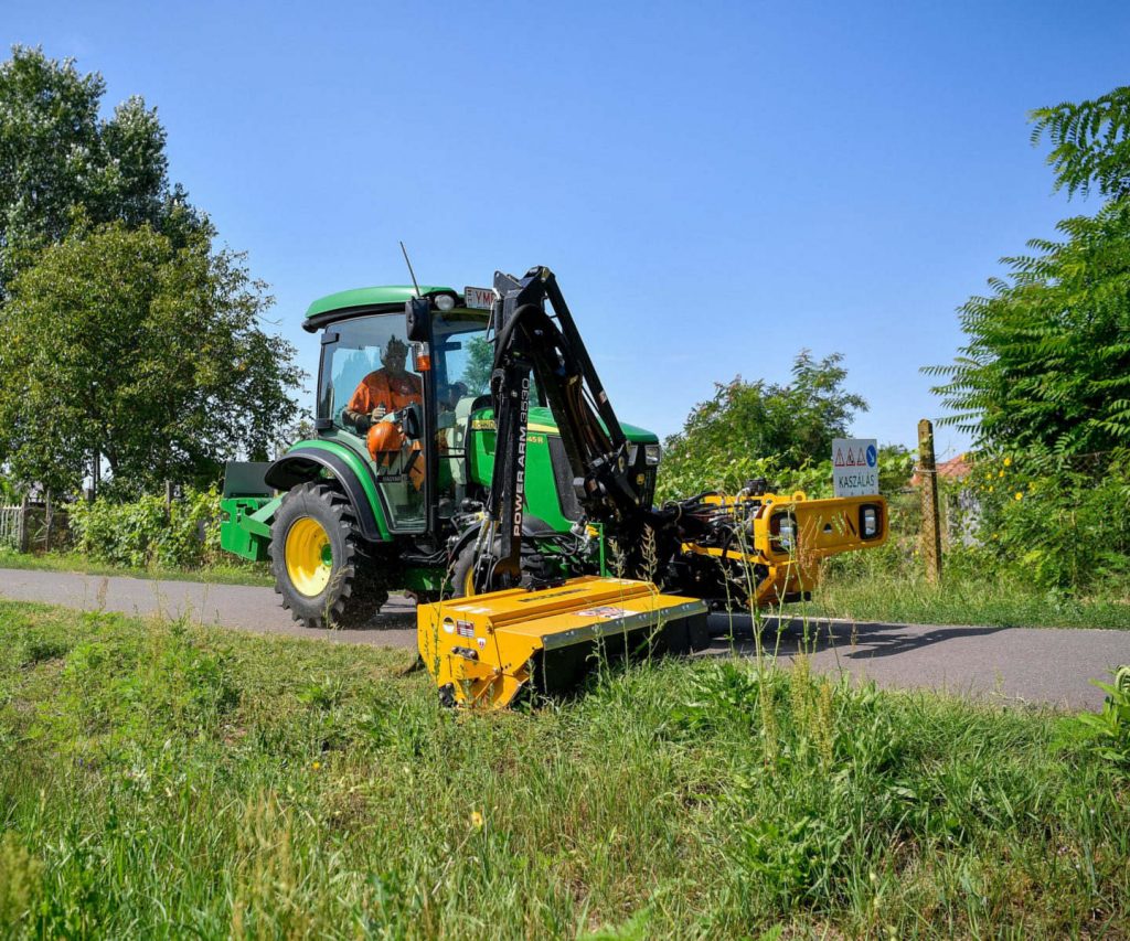 Kaszál a Közút az utak mentén, óvatosságra intik a munkagépek mellett elhaladó autósokat.