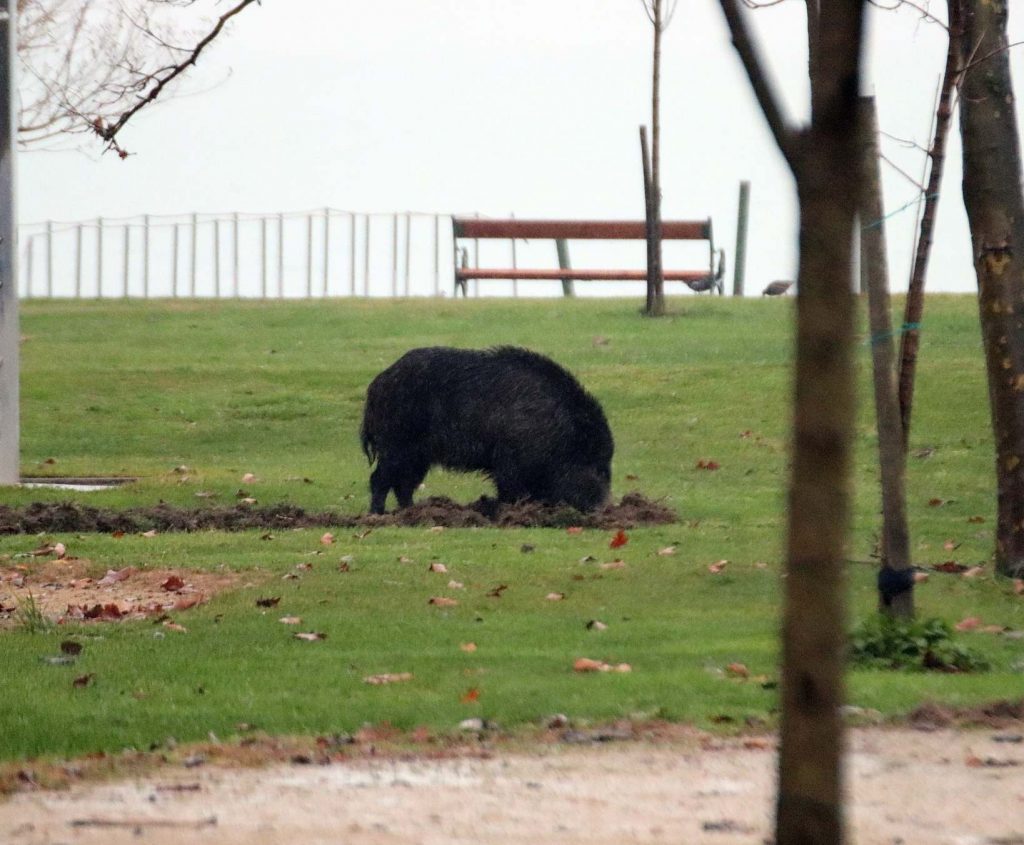 Pénteken reggel a Badacsonylábdihegyi strandon egy borjú méretű malacka volt az első vendég.