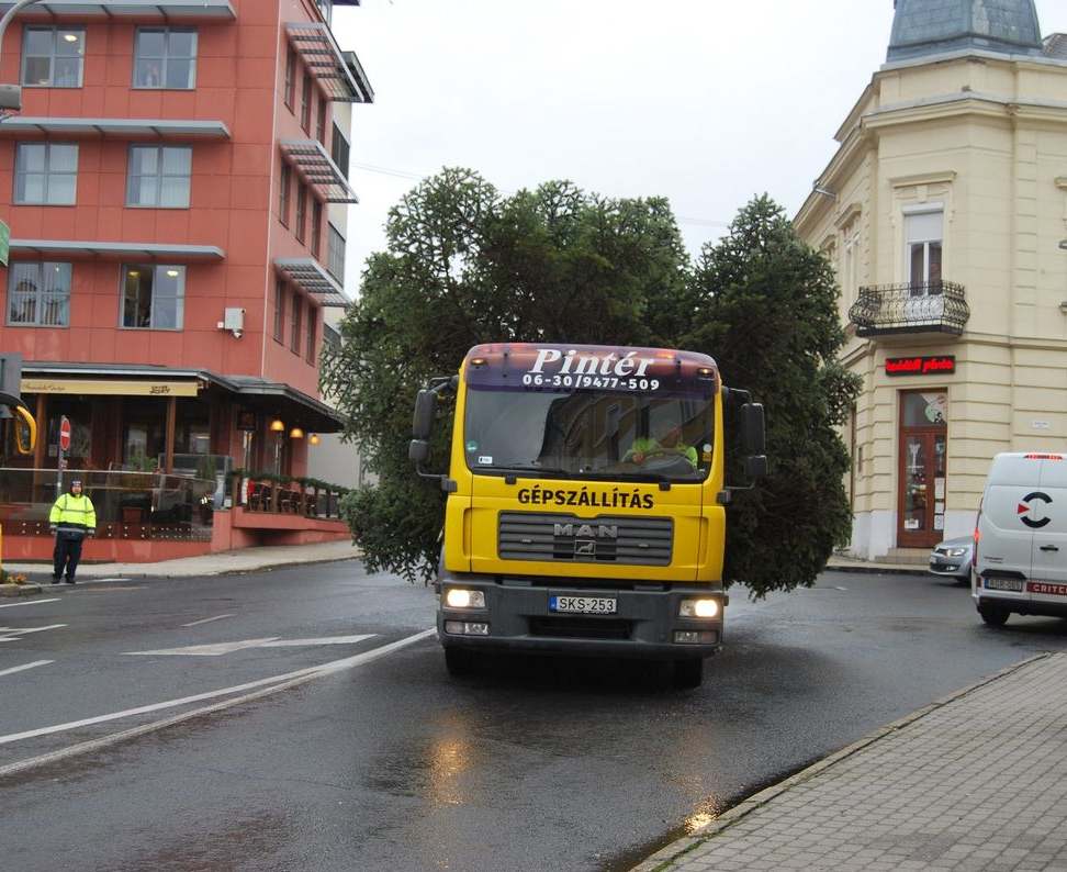A 25 éves helyi fiatal Németh Ádám ajánlotta fel a fenyőfát a városnak, hogy a tíz méteres fa a mindenki karácsonyfájaként...