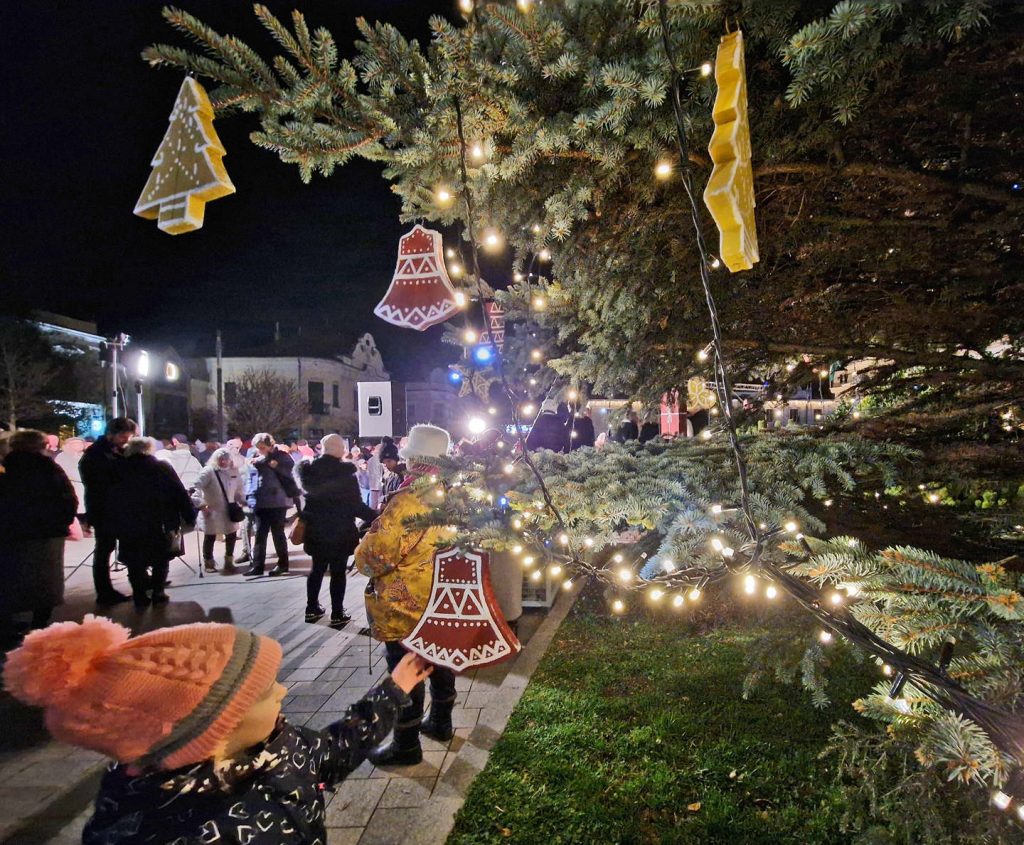Advent első vasárnapján Tál Zoltán atya gyújtotta megy az a gyertyát a város karácsonyfáján, majd a fenyőfa fényei is tünd...