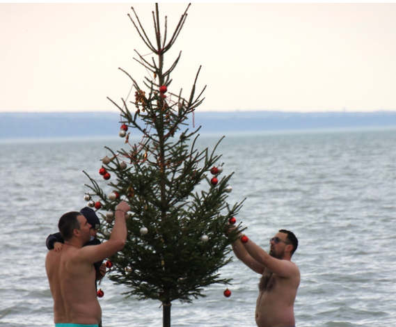 Az idei évben is felállították a karácsonyfát a szigligeti strand vizében, folytatva az immár évtizedes hagyományt.