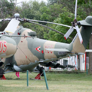 Ágyúcső mered az ég felé, közelében terepszínekre festett hatalmas helikopter. Ezeket láthatják a 71-es főút zánkai szakas...