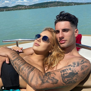 Csábos szelfit osztott meg Instagram oldalán a rádiós műsorvezető, amin párjával mosolyognak, háttérben a Balatonnal.
